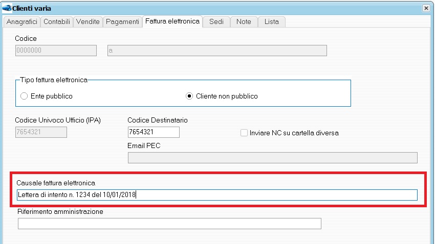 Dichiarazione d'intento - Danea Nota: Nelle versioni di Easyfatt antecedenti alla 2022.52, era prassi riportare in fattura elettronica i riferimenti alla dichiarazione d'intento inserendo nella scheda cliente come "nota da inserire in creazione documenti" voci tipo: @@Causale: Ricevuta dichiaraz. intento 21012920341234567-000001 ... Ricevuta dichiaraz. intento ...