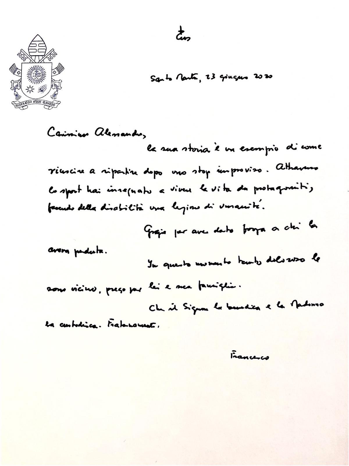 Il Papa scrive una lettera ad Alex Zanardi: "Prego per te, sei ... 24 Jun 2020 — ROMA – Papa Francesco scrive ad Alex Zanardi, per spingerlo a non arrendersi dopo il grave incidente in handbike in cui e' rimasto coinvolto ...